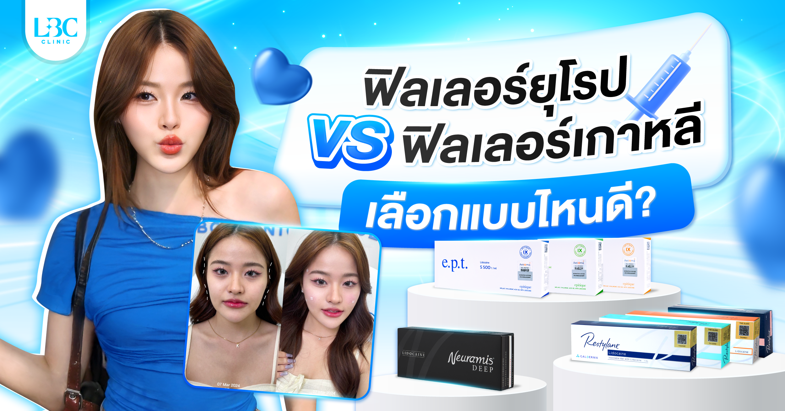 ฟิลเลอร์ยุโรป vs ฟิลเลอร์เกาหลี คำถามโลกแตกที่หลายคนสงสัย! จริง ๆ แล้วทั้งสองแบบมีจุดเด่นต่างกันไป ทั้งคุณภาพ ความคงทน และ ฟิลเลอร์ราคา ที่แตกต่างกัน บทความนี้ LBC จะพามาเปรียบเทียบแบบเข้าใจง่าย ๆ ว่าแบบไหนเหมาะกับใครบ้าง และที่สำคัญ เรามีโปรเด็ดจาก LBC CLINIC ให้ตัดสินใจได้ง่ายขึ้นแน่นอนค่ะ