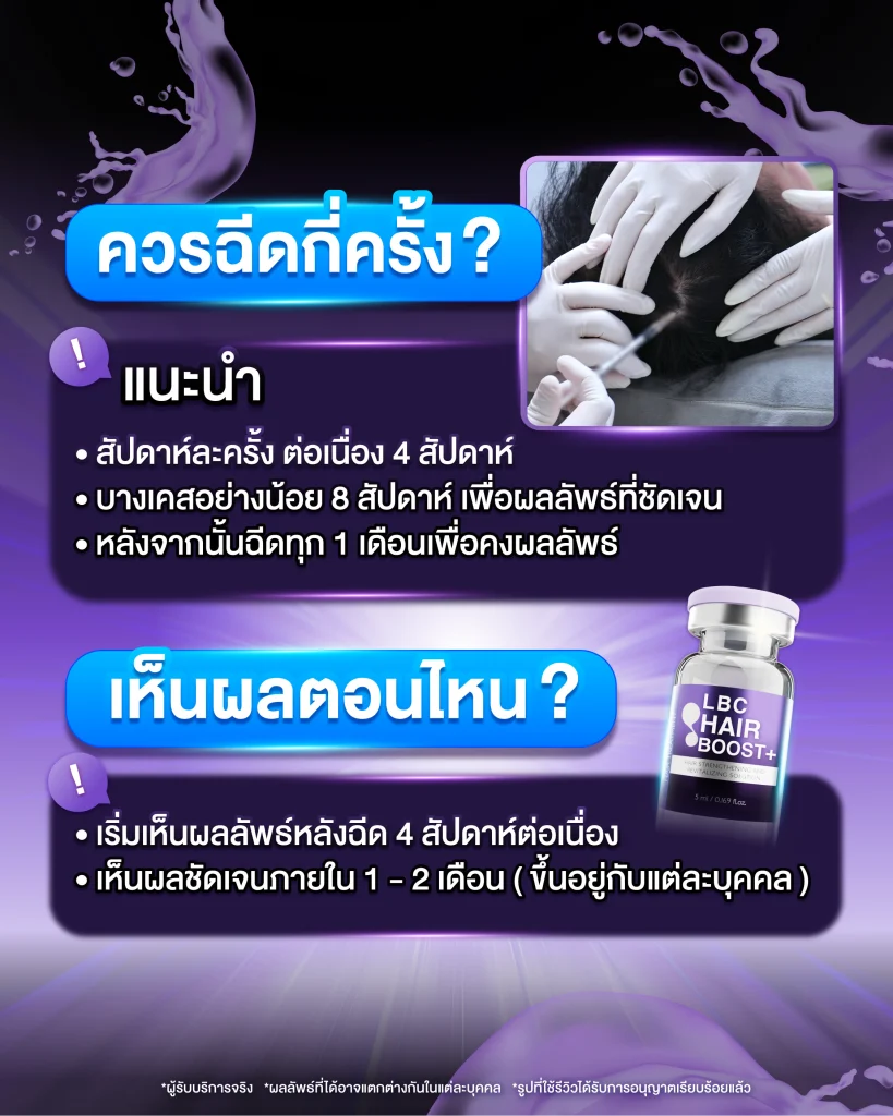 - โปรแกรม LBC HairBoost+ ต้องฉีดกี่ครั้ง เห็นผลเมื่อไหร่