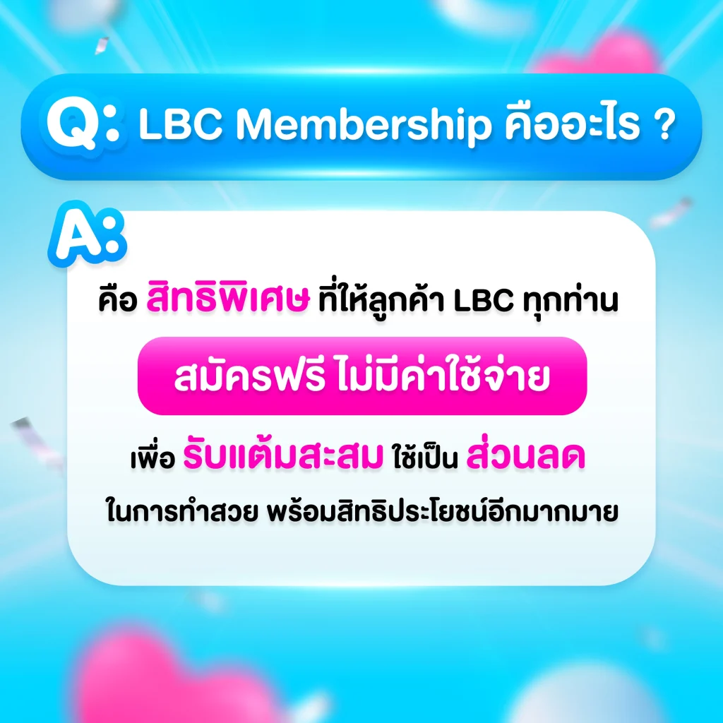 บทความนี้จะพาคุณไปรู้จัก LBC Membership แบบครบทุกมุม ทั้งระดับสมาชิก สิทธิที่ได้รับ และวิธีสมัครง่าย ๆ ที่ใครก็ทำได้ สมัครก่อน คุ้มก่อน สวยก่อน แล้วคุณจะเข้าใจว่าทำไมต้องรีบสมัคร