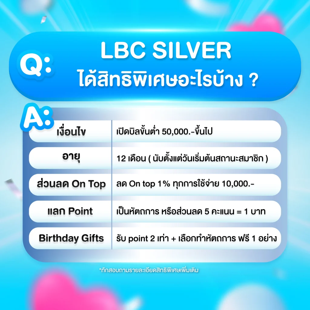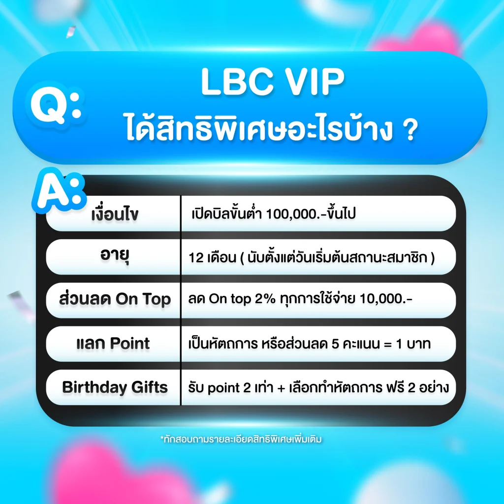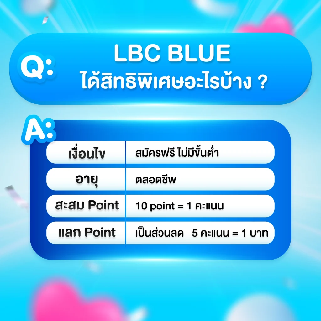 เพราะ สิทธิพิเศษ LBC ที่คุณจะได้รับนั้นคุ้มค่าสุด ๆ ไม่ว่าจะเป็น
