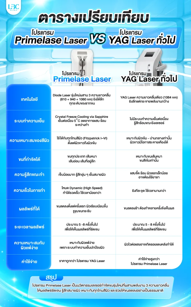 - เปรียบเทียบ โปรแกรม Primelase Laser กับ โปรเลเซอร์กำจัดขนอื่น ๆ