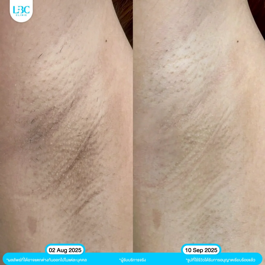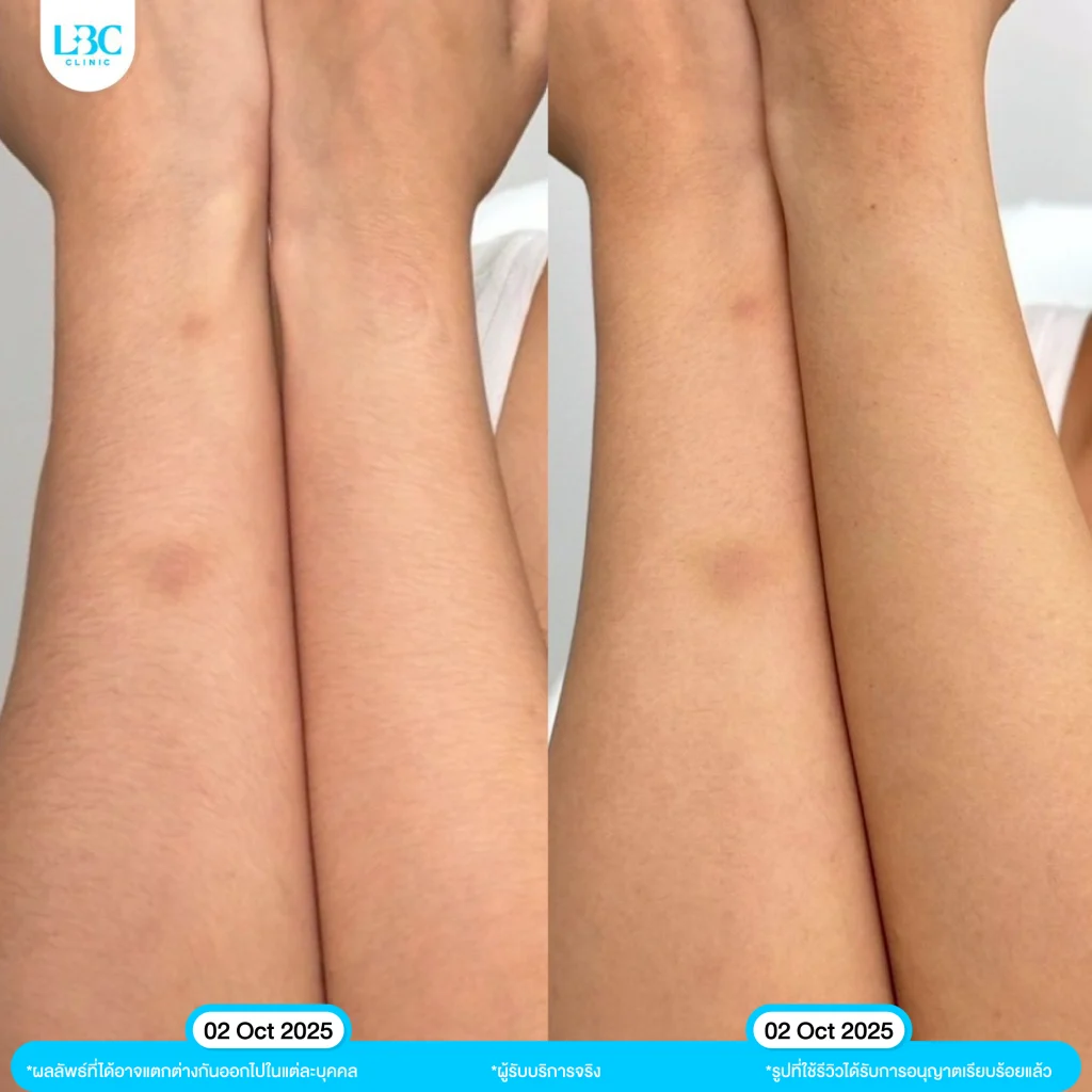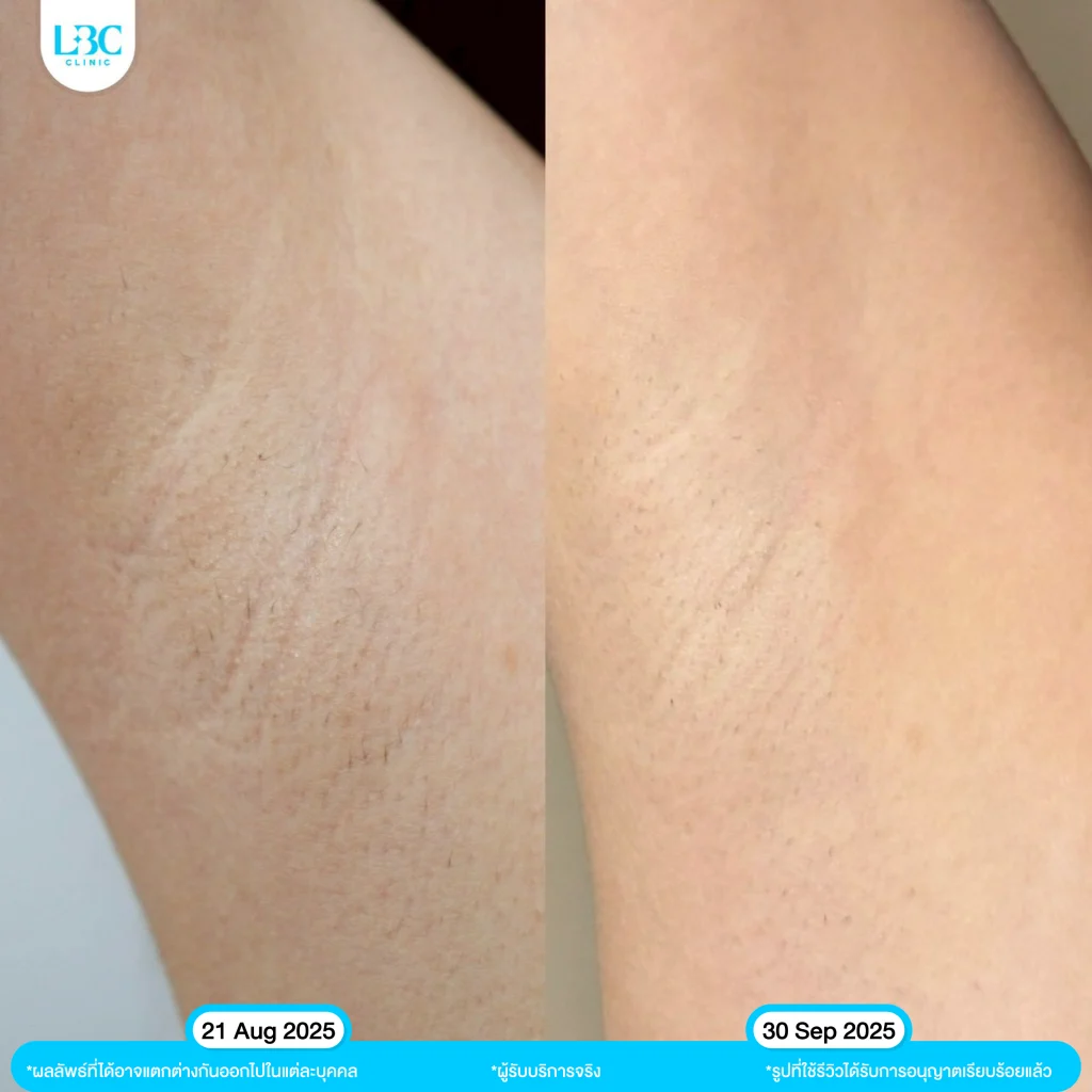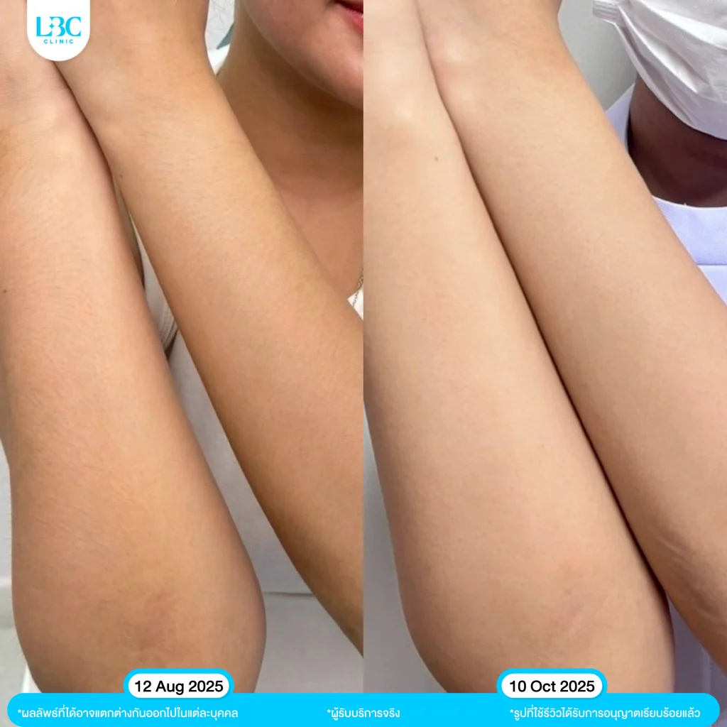 จะเห็นผลลัพธ์เต็มที่ จะสังเกตเห็นได้ชัดว่าขนลดลงอย่างต่อเนื่อง ผิวดูนุ่ม ละเอียด และสว่างขึ้น - ระยะติดตามผล 6 เดือน ถึง 1 ปี