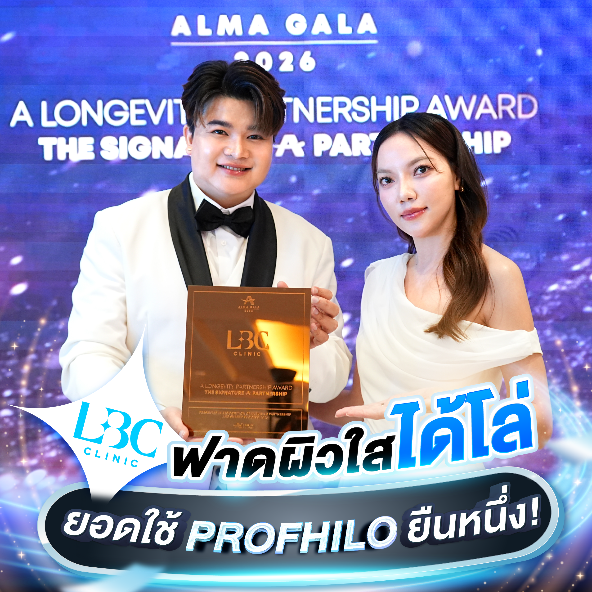 LBC CLINIC ตอกย้ำผู้นำด้านงานผิวอันดับ 1 ของประเทศไทย ด้วยการคว้ารางวัล A LONGEVITY PARTNERSHIP AWARD – THE SIGNATURE A PARTNERSHIP ภายในงาน The 1st Alma Gala 2026 ซึ่งจัดขึ้นโดย Alma Lasers Thailand ผู้นำเข้าและจัดจำหน่ายโปรแกรม PROFHILO อย่างเป็นทางการในประเทศไทย