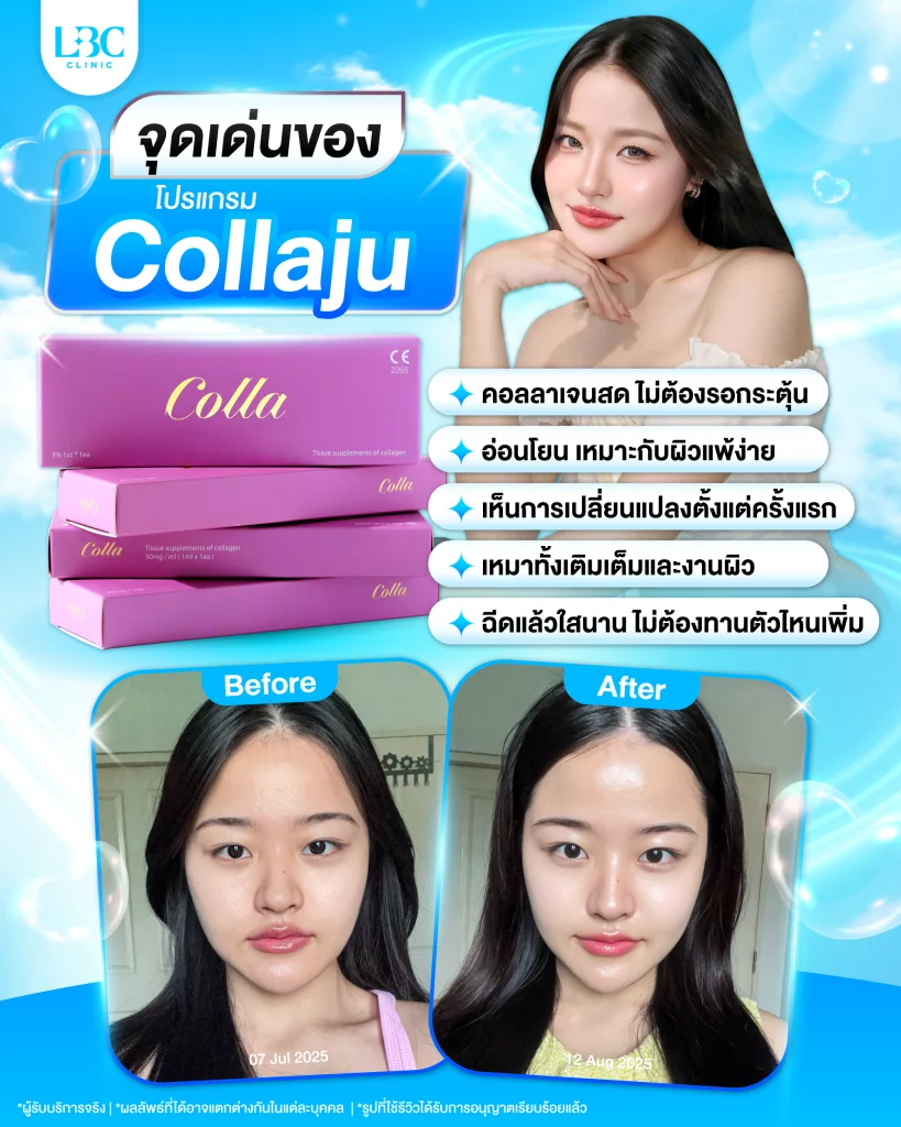 ช่วงนี้กระแสงานผิวมาแรงมาก ทำให้ยอดค้นหาเกี่ยวกับ “Collaju”, “โปร Collaju” และคำถามว่า ฉีดผิวที่ไหนดี เพิ่มสูงขึ้นอย่างต่อเนื่อง ซึ่งหนึ่งในคลินิกที่ถูกพูดถึงมากที่สุดคือ LBC CLINIC เพราะมียอดใช้บริการโปรแกรม Collaju สูงจนบริษัท COLLAJU THAILAND ต้องมาจัดกิจกรรมพิเศษ “Collaju’s Day” พร้อมเปย์โปรคุ้ม แจกของแถมให้ถึงที่
