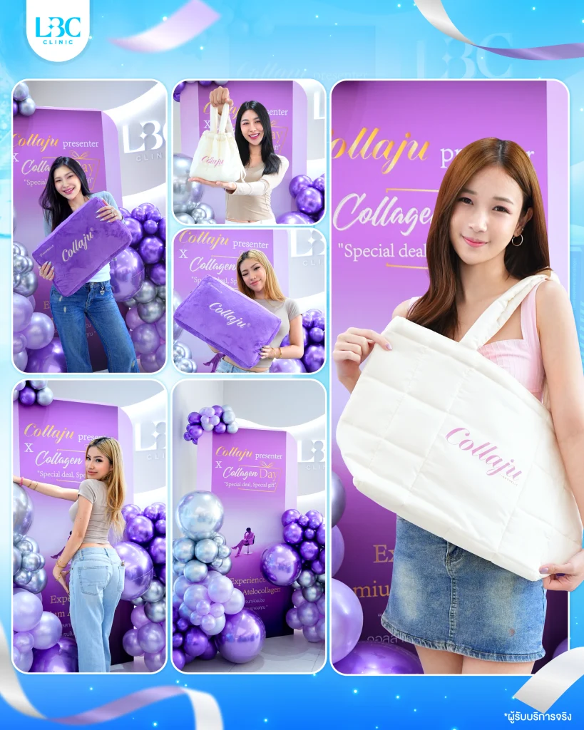 กระแสคอลลาเจนสดของโปรแกรม Collaju ที่ LBC ได้รับความสนใจจากทั้งลูกค้า ด้วยผลลัพธ์เรื่องผิวฟู อิ่มน้ำ และดูใสขึ้นอย่างเป็นธรรมชาติ จนยอดขายพุ่ง ทำให้กิจกรรมครั้งนี้ถูกจัดขึ้นพร้อมซุ้มสีม่วงขนาดใหญ่ภายใน LBC CLINIC ทั้ง 3 สาขา สาขาพระราม 9, สาขาสยาม, สาขาสุขุมวิท39 ให้ลูกค้าได้ถ่ายรูป เช็กอิน และสัมผัสผลิตภัณฑ์อย่างใกล้ชิด